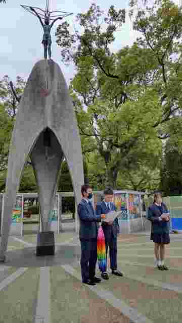 その後フェリーで広島に戻り、広島平和記念公園を訪れました。ここでは平和式典を行い千羽鶴を手向けて平和を祈り、その後行われた講演会では被爆者から原爆の恐ろしさをお聞きし、平和へ向けて我々ができることを考える大変貴重な機会をいただきました。