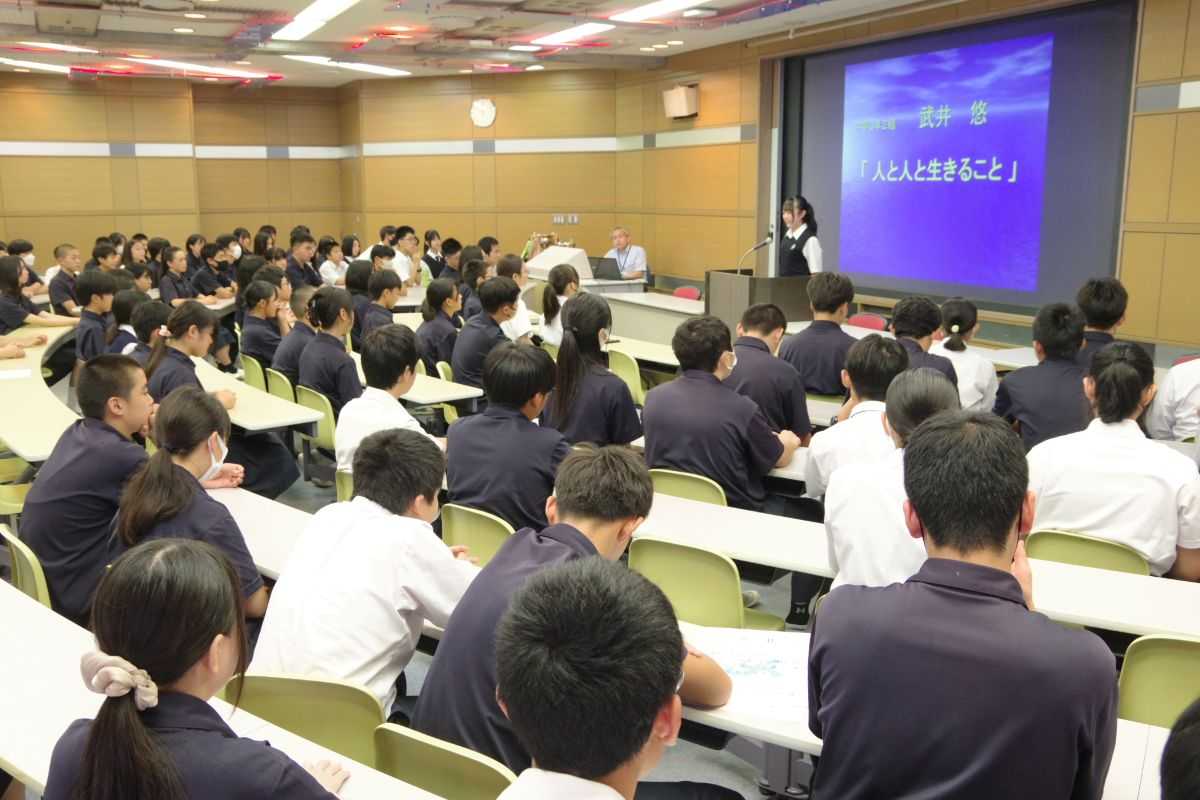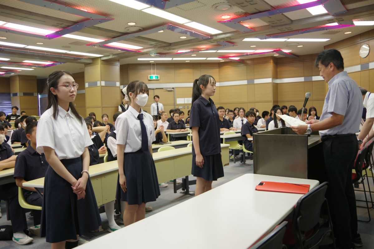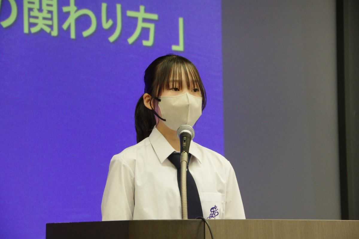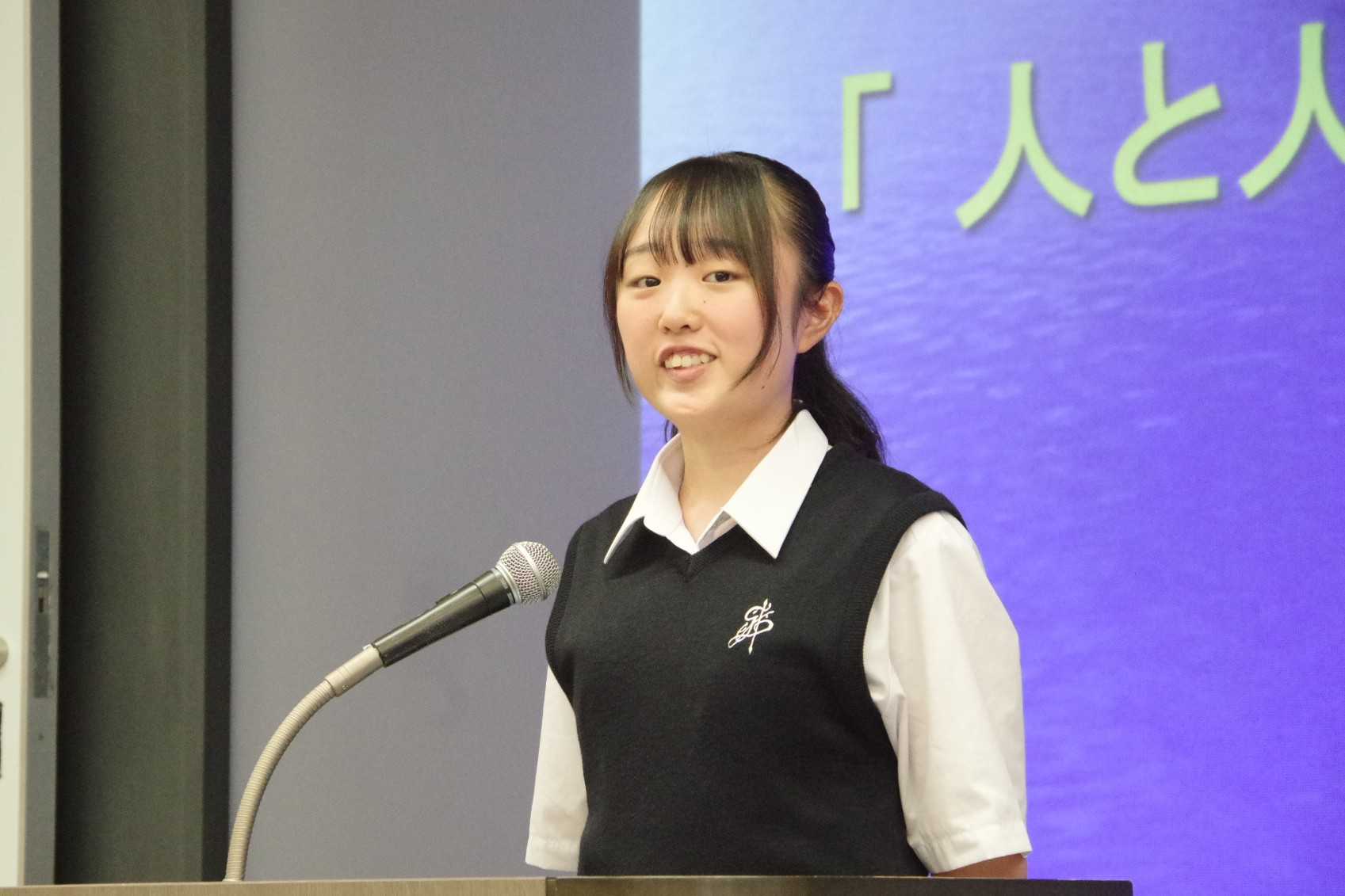 本校では、全校生徒による「主張作文」に取り組んでいます。自らの主張を原稿用紙4枚に作文し、それをもとにクラス全員の前でスピーチを行います。各クラスで選出された最優秀者は、クラス代表として全校生徒の前で発表を行いました。