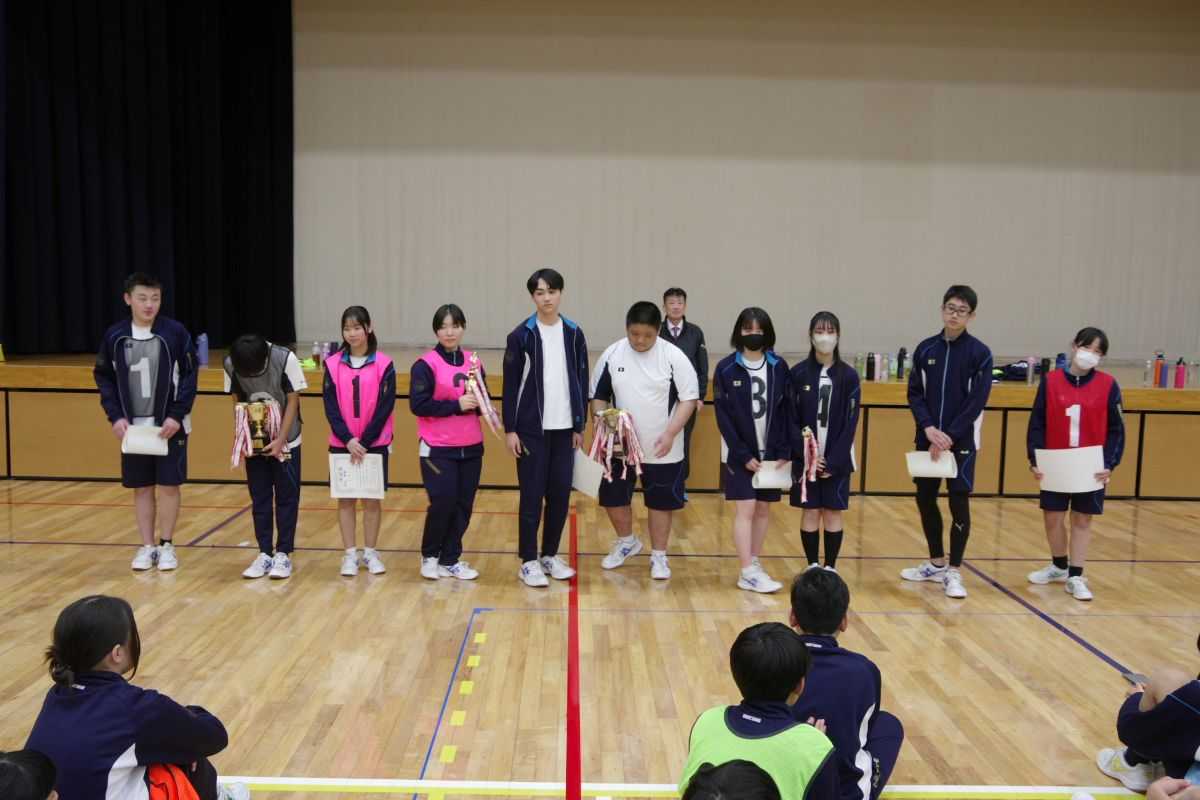 午前中に予選リーグを行い、各リーグを勝ち抜いたチームが午後の決勝トーナメントへ進出しました。決勝戦は男女ともに3年生同士の対戦となり、白熱した試合が繰り広げられました。一方、女子の部では1年生チームが3位に入賞するという快挙もあり、会場を大いに沸かせました。