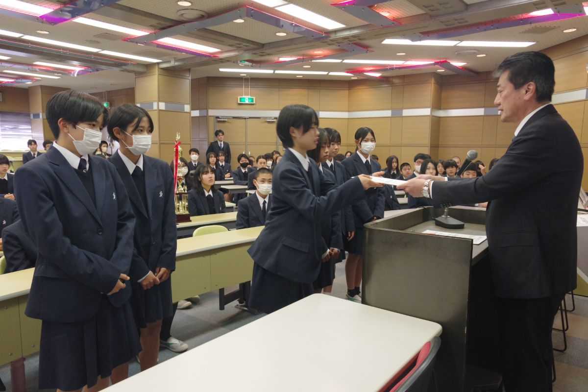 また、2学期中に学習や部活動等で努力した生徒の表彰も行われました。